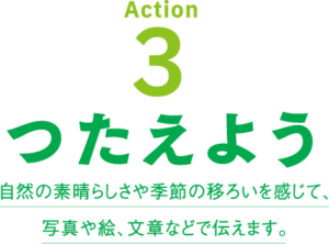 自然や生きものに触れて感じたことを家族や友人と話し合ったり、写真や絵でみんなに伝えることで、生物多様性の輪が広がります。