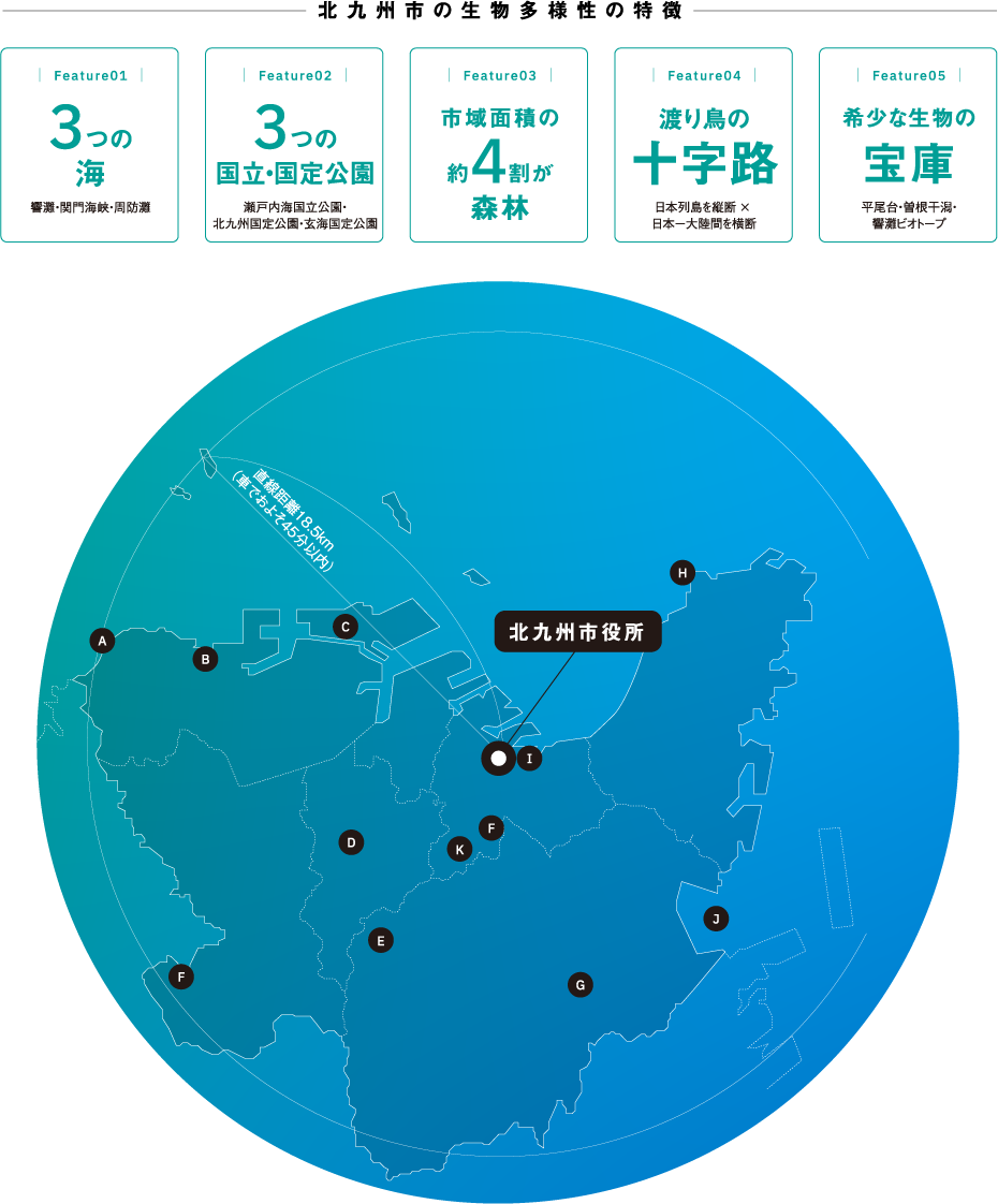 工業を主体として産業都市として成長し、九州を代表する大都市として発展を遂げてきた北九州は、先人が守り育ててくれた、都市に近接する豊かで面白い生き物や自然、